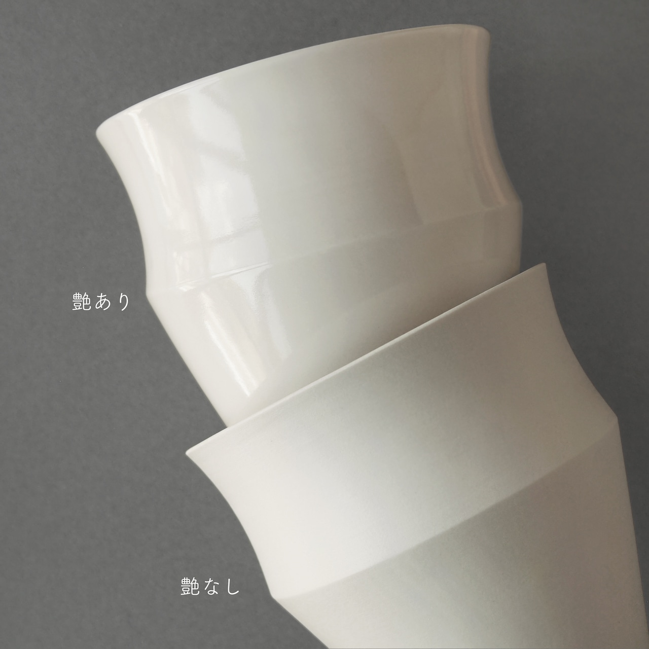 「艶なし」は、テラシギラータという陶土の微粉末を表面に塗って焼成しているので、白磁の焼き締めのような質感ですが焼き締めよりも光沢があり艶やかです。