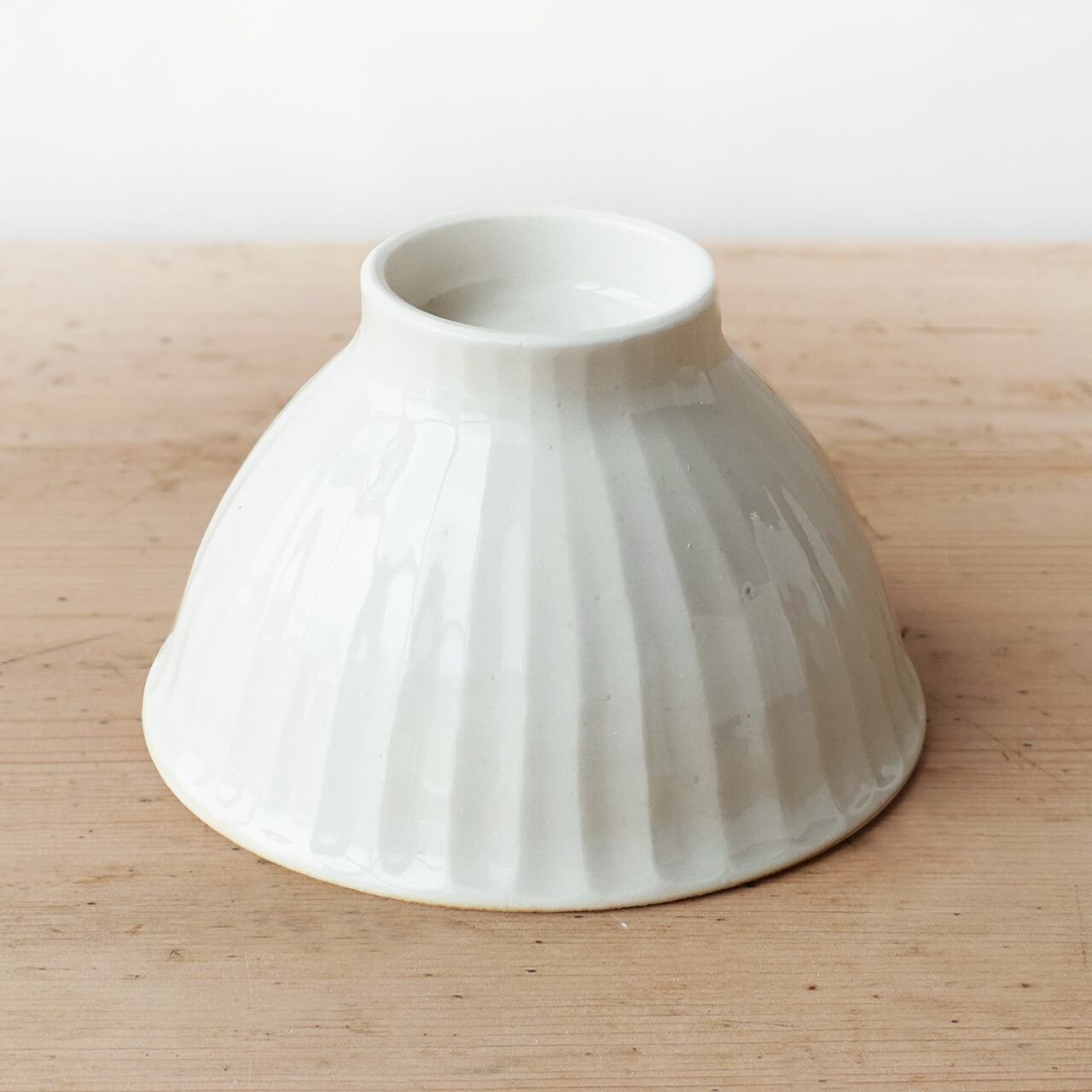 高台に向かってゆるやかな曲線を描く美しい形状と、外側にぐるっと施した鎬がアクセントとなっています。
