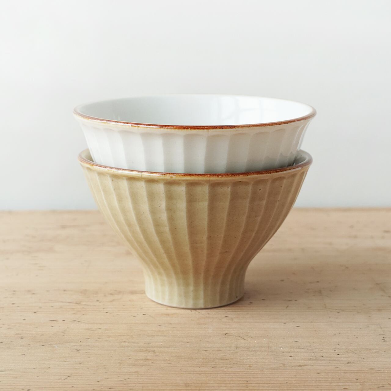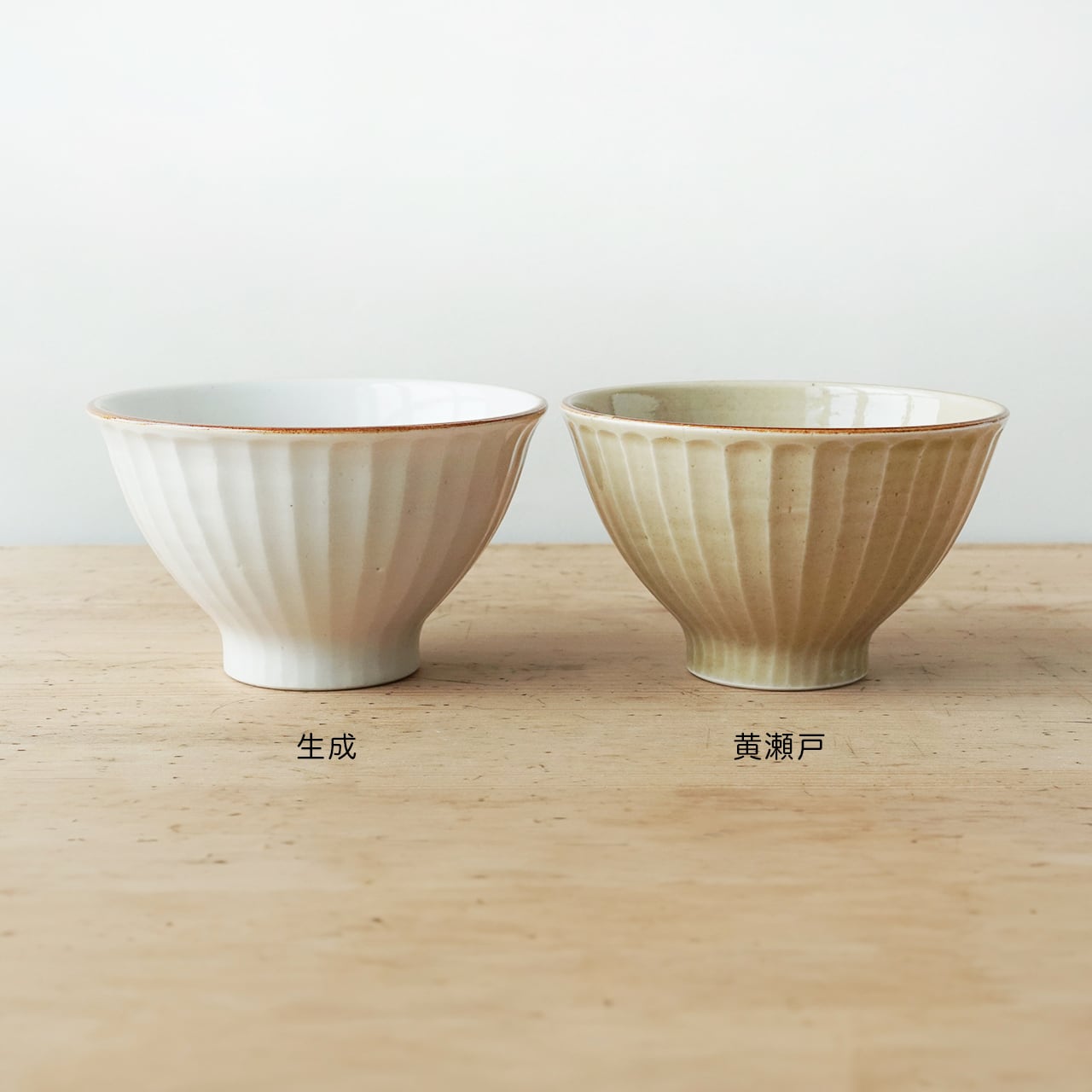 ほんのりと黄色みがかった白の「生成」と、落ち着いた色味の「黄瀬戸」の2種類。どちらもご飯をより一層美味しく見せてくれる素朴で優しい色合いです。