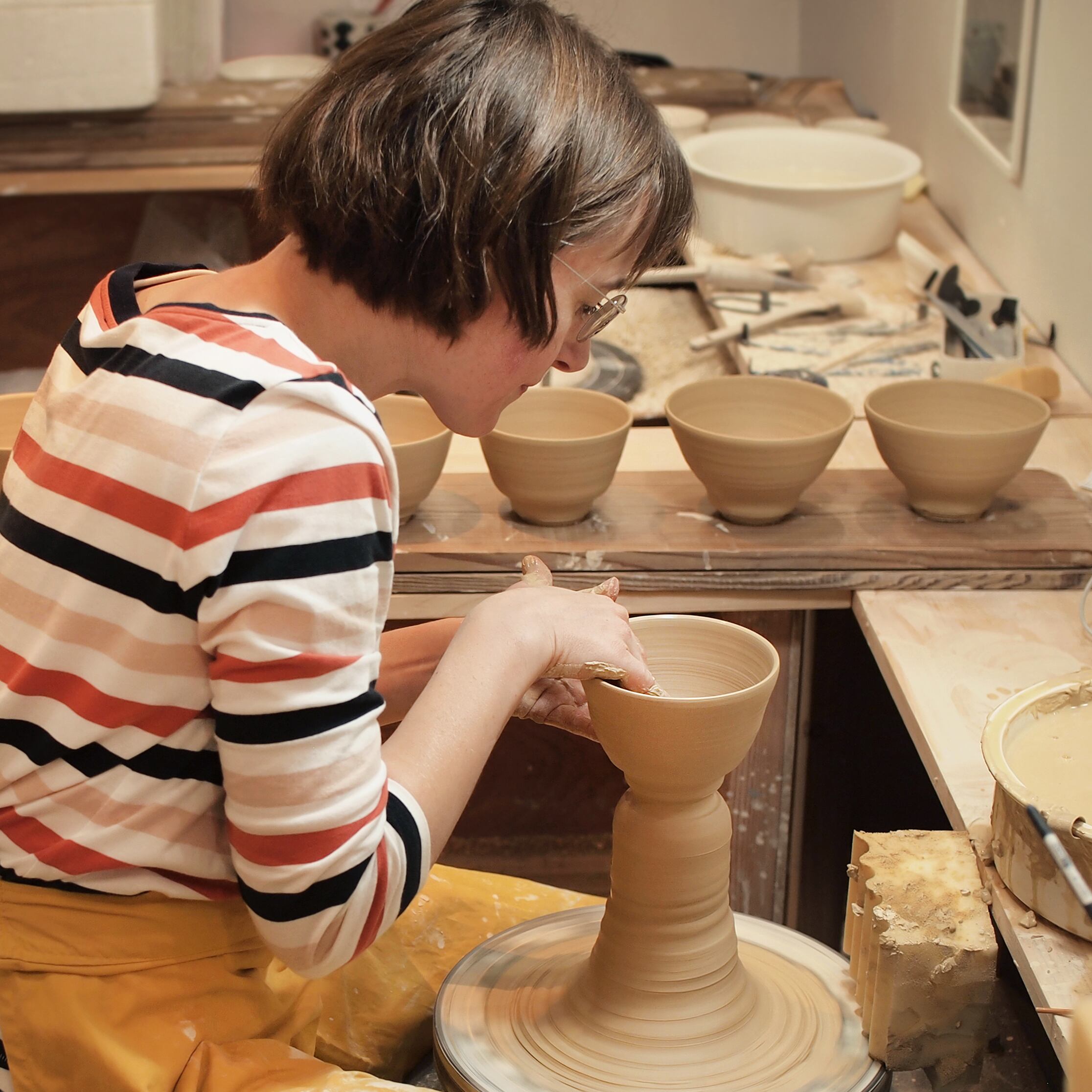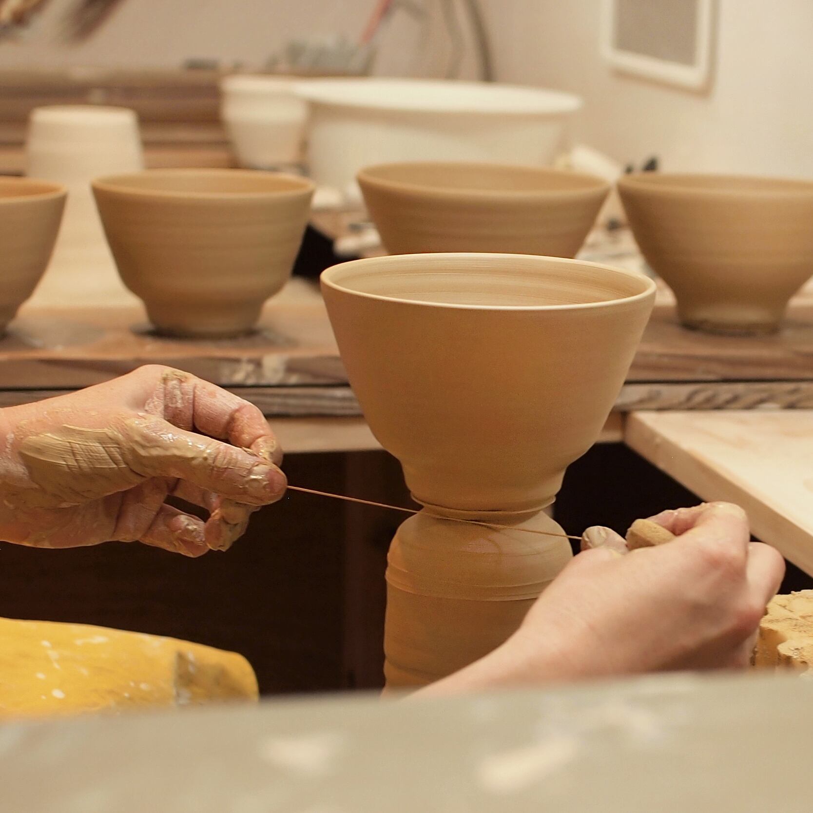 ひとつひとつ手作りのため、作品ごとに形や大きさ、重量、色味が異なります。鉄点、はぜ、ピンホール、色むらなども作品の個性としてお楽しみください。