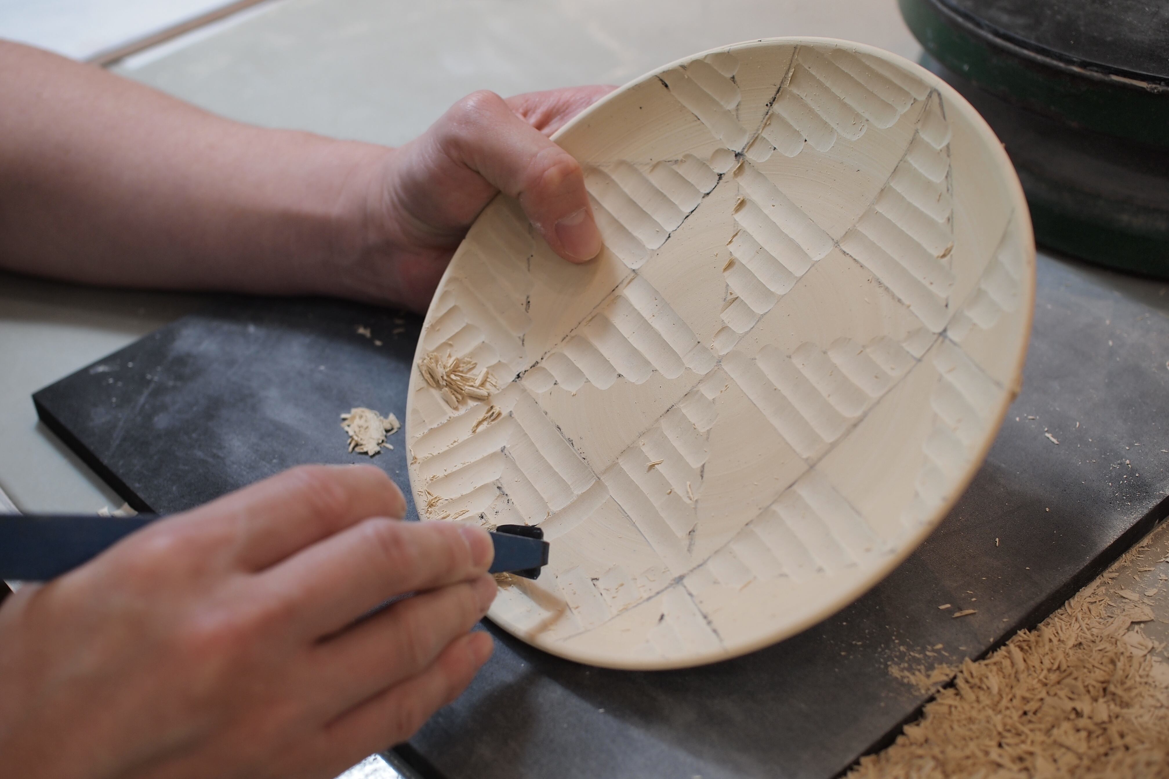 しのぎシリーズはロクロを挽いた時に出る削り粉を集め再生して作っています。